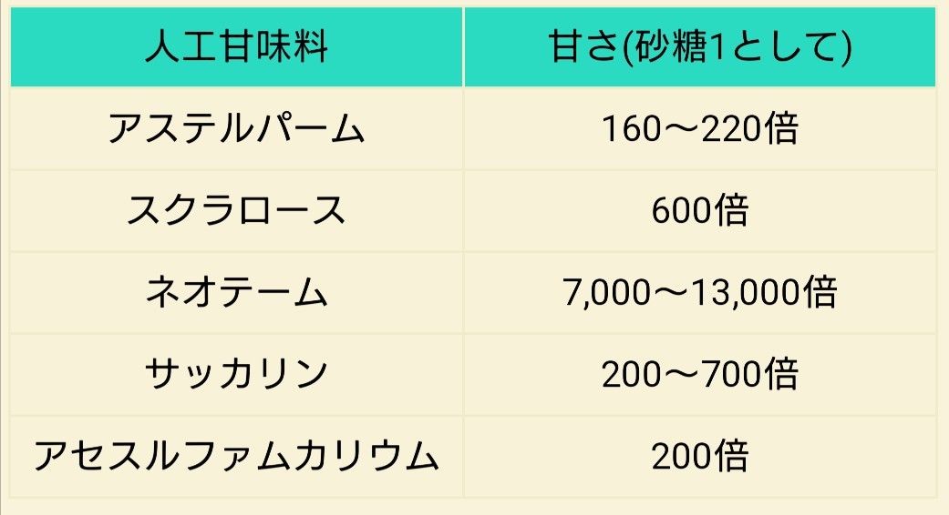 ・人口甘味料は砂糖と違い体内で代謝や分解されることがなく、腸から吸収されて体中を巡って腎臓から排泄されるので、肝臓や腎臓にダメージを与える可能性が高いといわれている。
