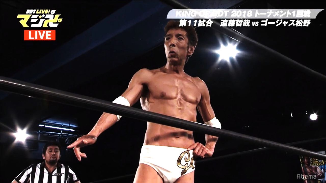私の試合は、トーナメント第1回戦、遠藤哲哉vsゴージャス松野のシングルマッチ時間無制限一本勝負でした。