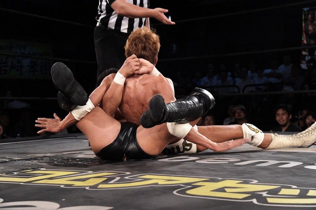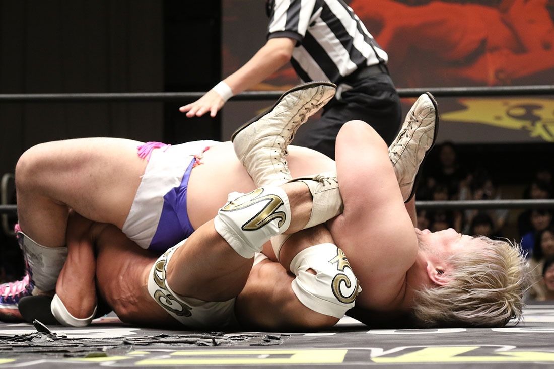 遠藤が挑発に乗ってポーズを決めた隙を狙って丸め込むが、遠藤があっさり踏ん張る。