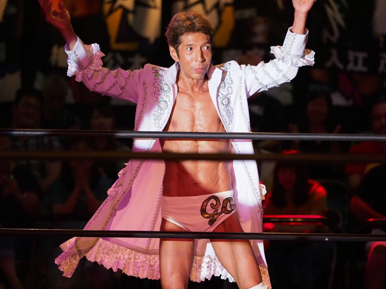 歌謡ショー終了後、リング上に現れた男色ディーノに、自分がガトームーブの前座で唄わされたことを猛抗議・・・二人が小競り合いをしているところにHARASHIMAが入ってきて両者を分ける。