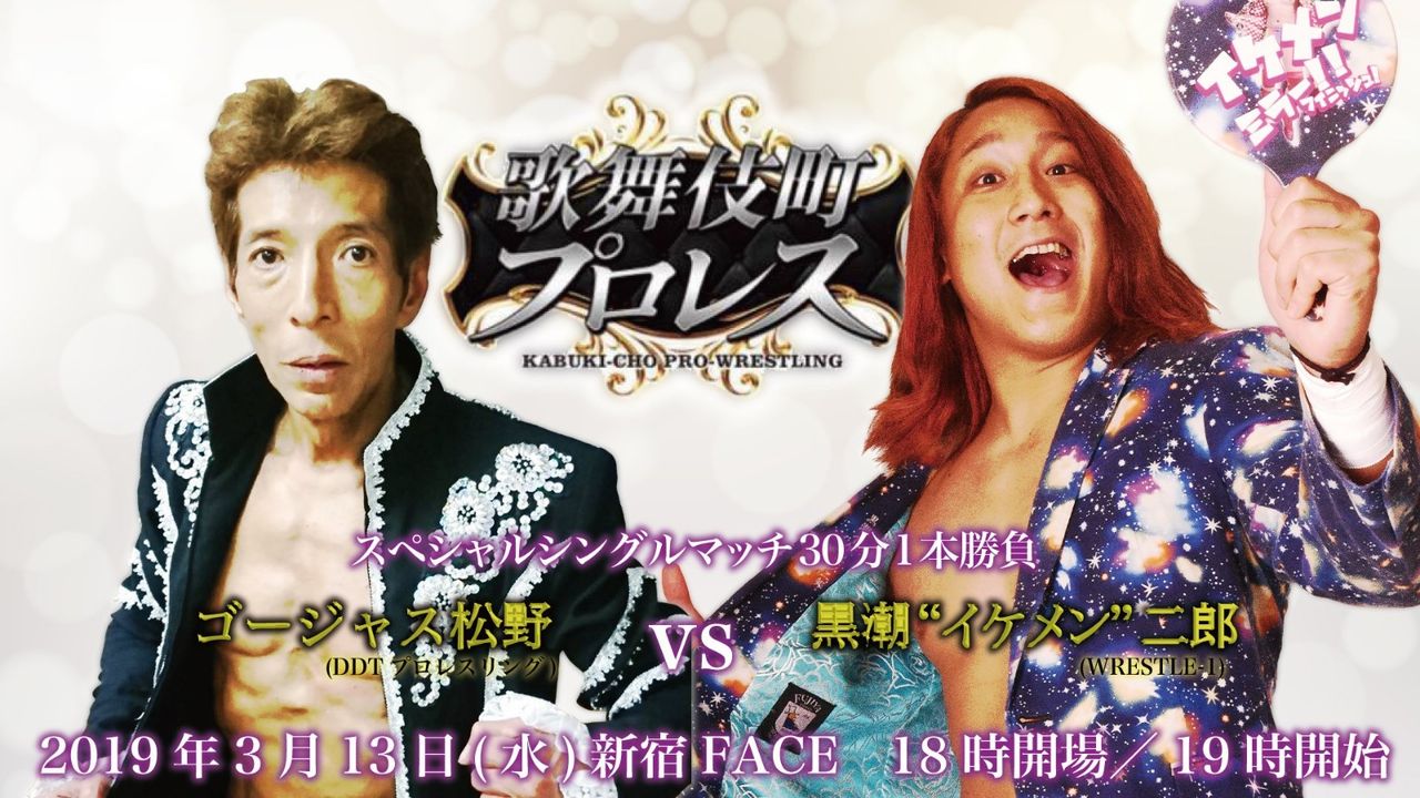 ゴージャス松野(DDTプロレスリング)vs黒潮イケメン二郎(WRESTLE-1)