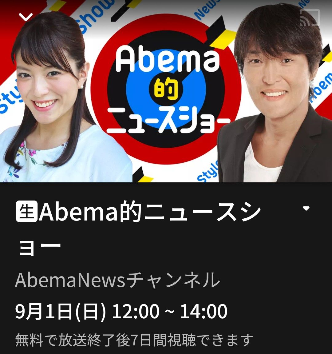 先週、突発的なニュースが入り放送が延期となったAbemaTVの「Abema的ニュースショー」が、今週日曜日に改めて放送されることになりました。