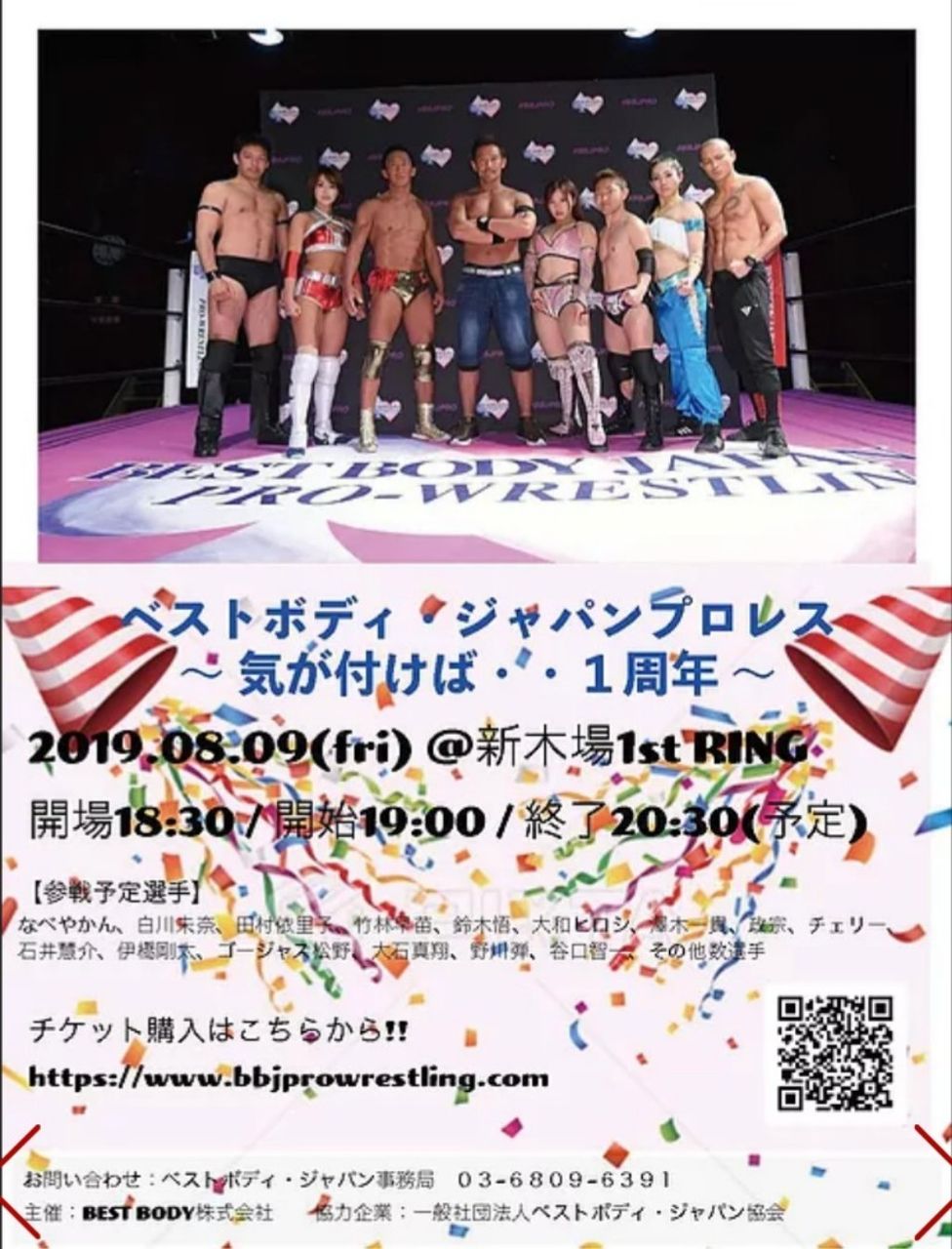 明日は、ベストボディ・ジャパンプロレス1周年記念大会が開催されます。