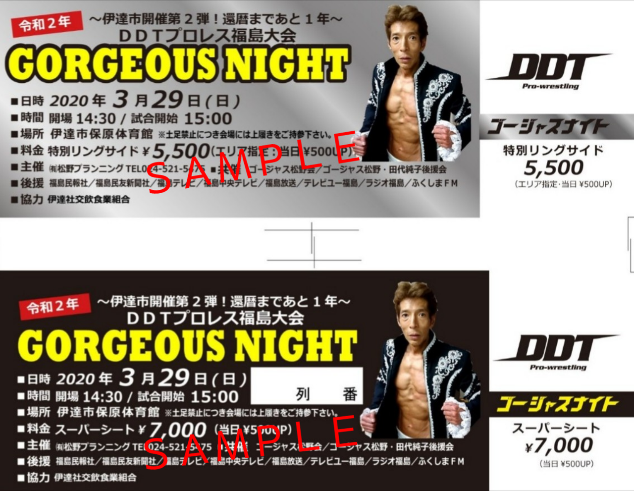 3月29日に開催されるDDTプロレス福島大会『ゴージャスナイト』のポスター、チケットが遂に完成致しました。