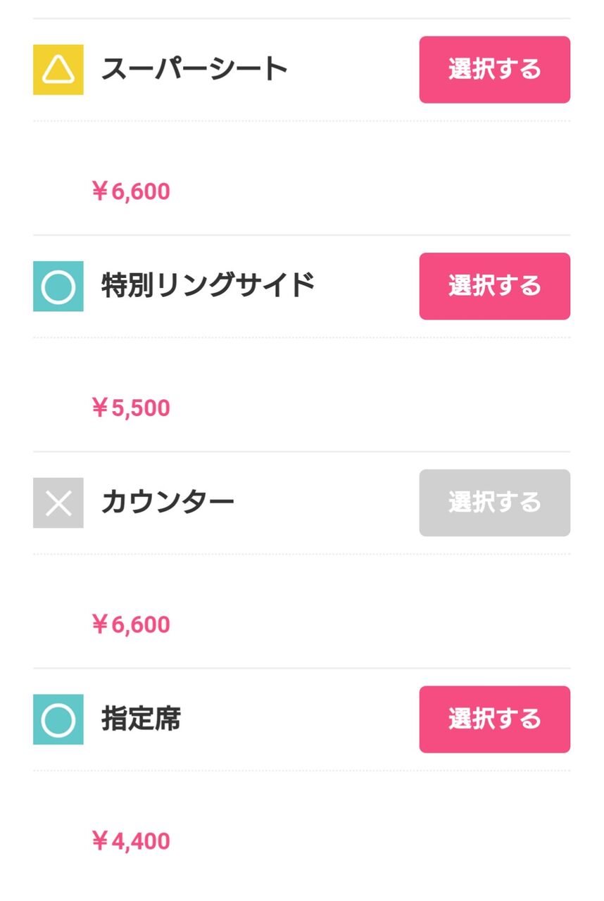 〇リングサイド4,500円(エリア指定/当日5,000円)