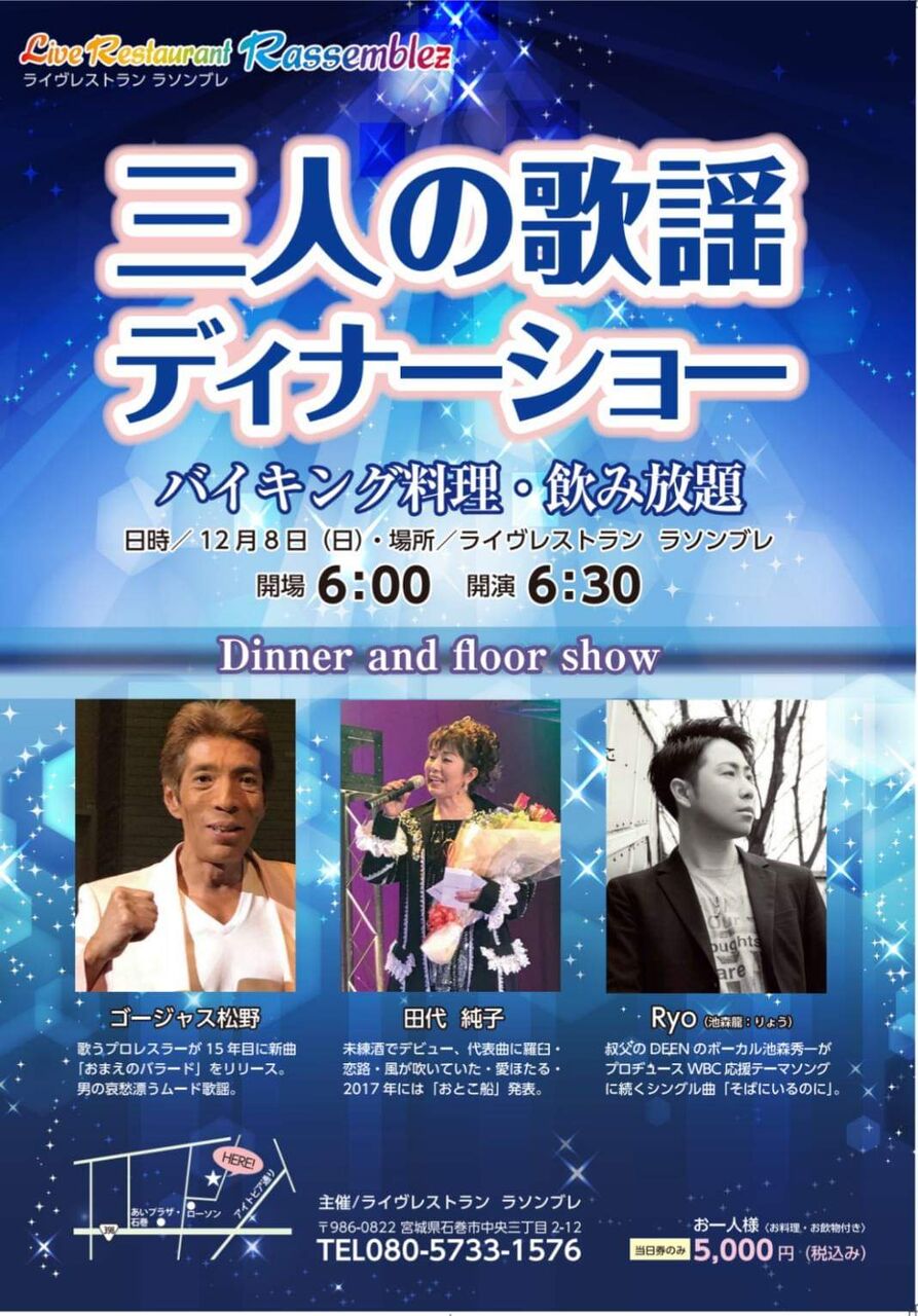 シェフご自慢料理と共に演歌・歌謡・ポップスのバラエティーに富んだステージを存分にお楽しみ下さい✨