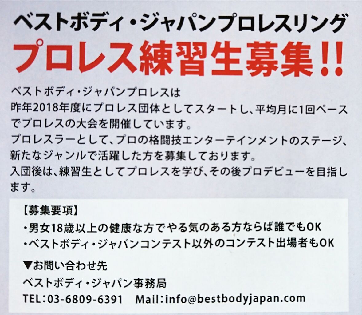 ベストボディ・ジャパンプロレス新木場大会興行情報〜練習生大募集〜