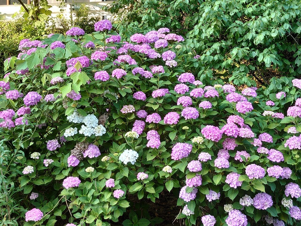 他にも多彩な色の変化から七変化(しちへんげ)や八仙花(はっせんか)、丸まった花の形から手鞠花(てまりばな)等とも呼ばれているそうです。