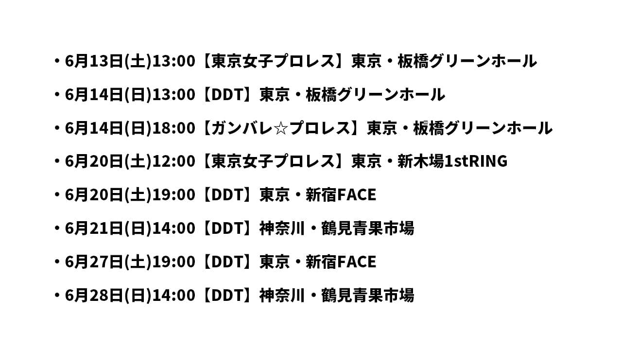 DDTグループでは政府による新型コロナウイルス感染拡大に伴う緊急事態宣言が全国で解除、東京都のロードマップが6月1日(月)よりステップ2に移行されることを受け、6月13日(土)より有観客興行を再開することを決定致しました。