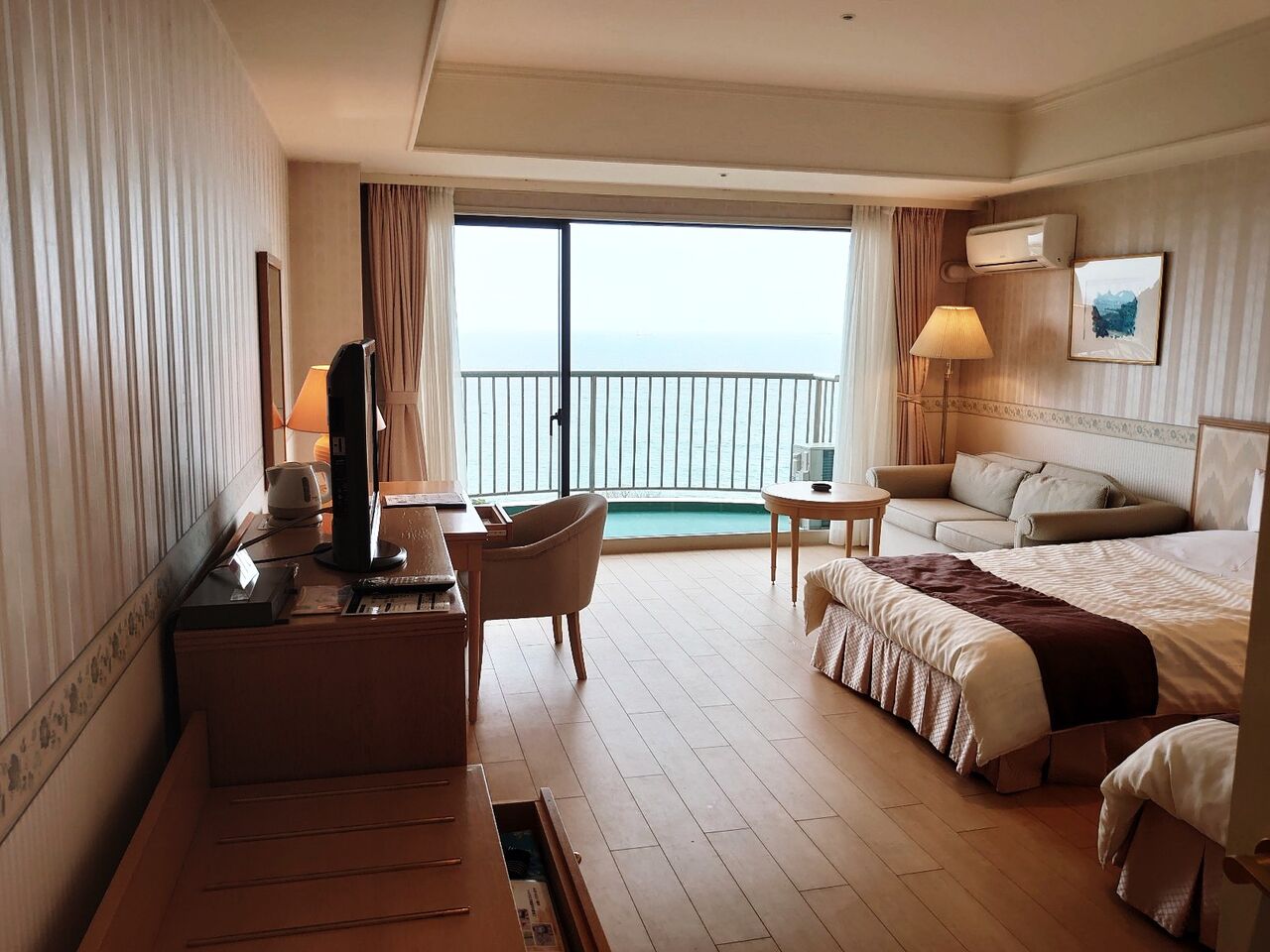 42平米の広々ツインルームの眼下には、太平洋とゴルフコースが広がり、日々の喧騒を忘れさせる解放感にたっぷり浸ることが出来ます。