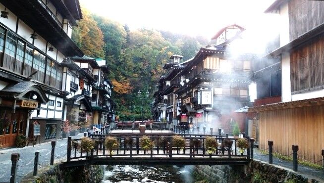 銀山温泉は、江戸時代初期の大銀山として栄えた「延沢銀山」の名に由来し、温泉街の中心を流れる銀山川の両岸には、大正末期から昭和初期に建てられた洋風木造多層の旅館が建ち並び、昔ながらの独特な景観を味わうことが出来る山間の小さな温泉郷です😊