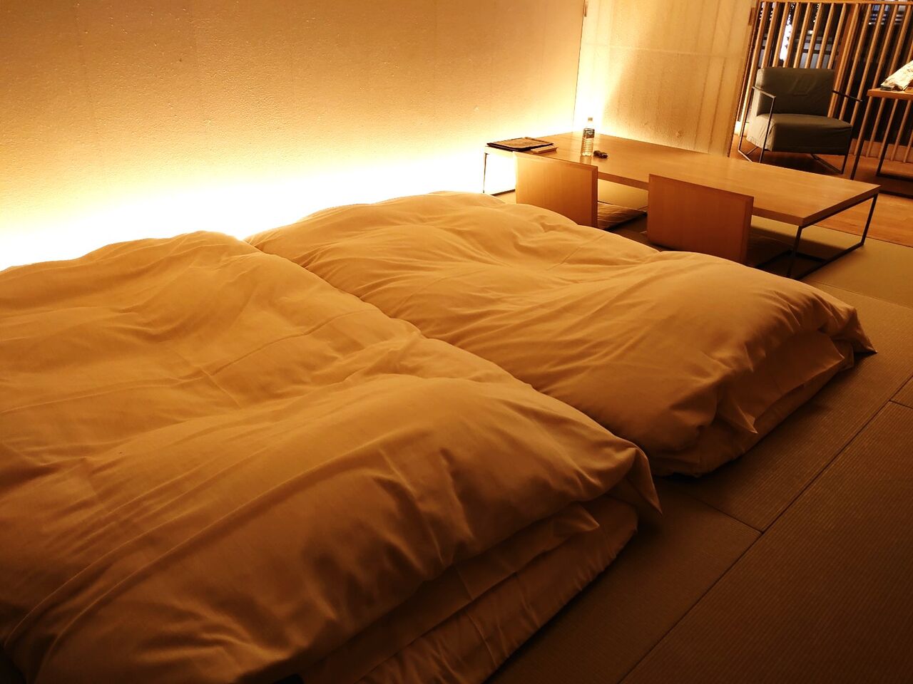 8室しかない客室は、全室洗練された和モダンな造りで、木造建築の館内の照明は全て間接照明と竹細工のある落ち着いた空間となっており、一歩館内に足を踏み入れれば、異次元空間の淡い暖かみに全身が包まれます。