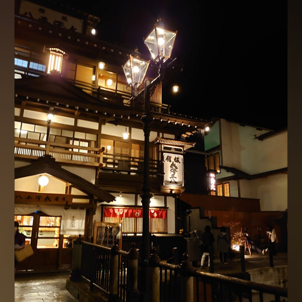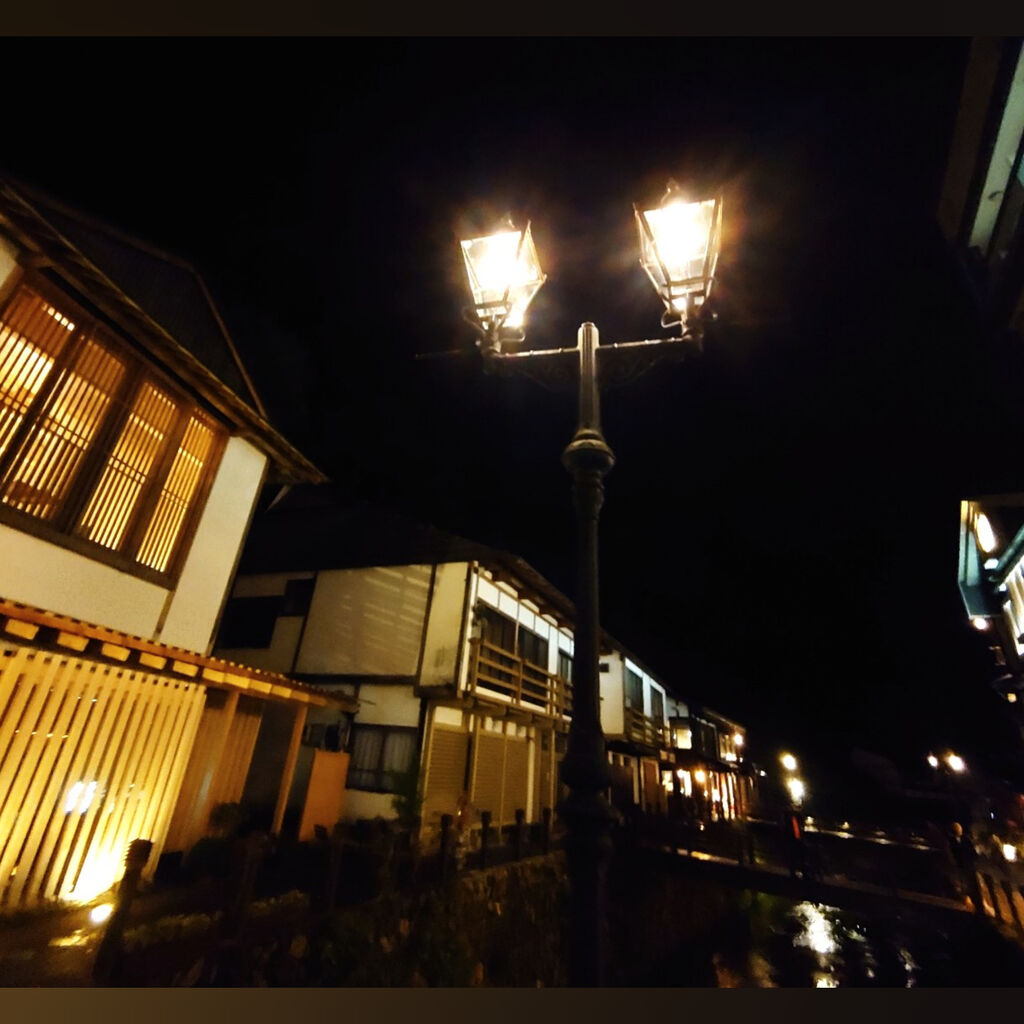 夜になると川沿いのガス灯と各旅館の照明が灯り、温泉街が暖かみのある幻想的な空気に包まれます😊