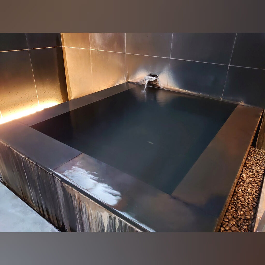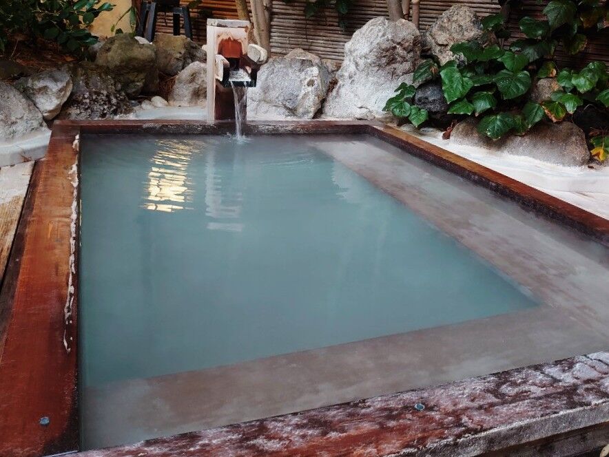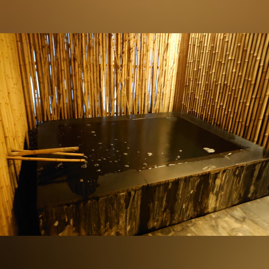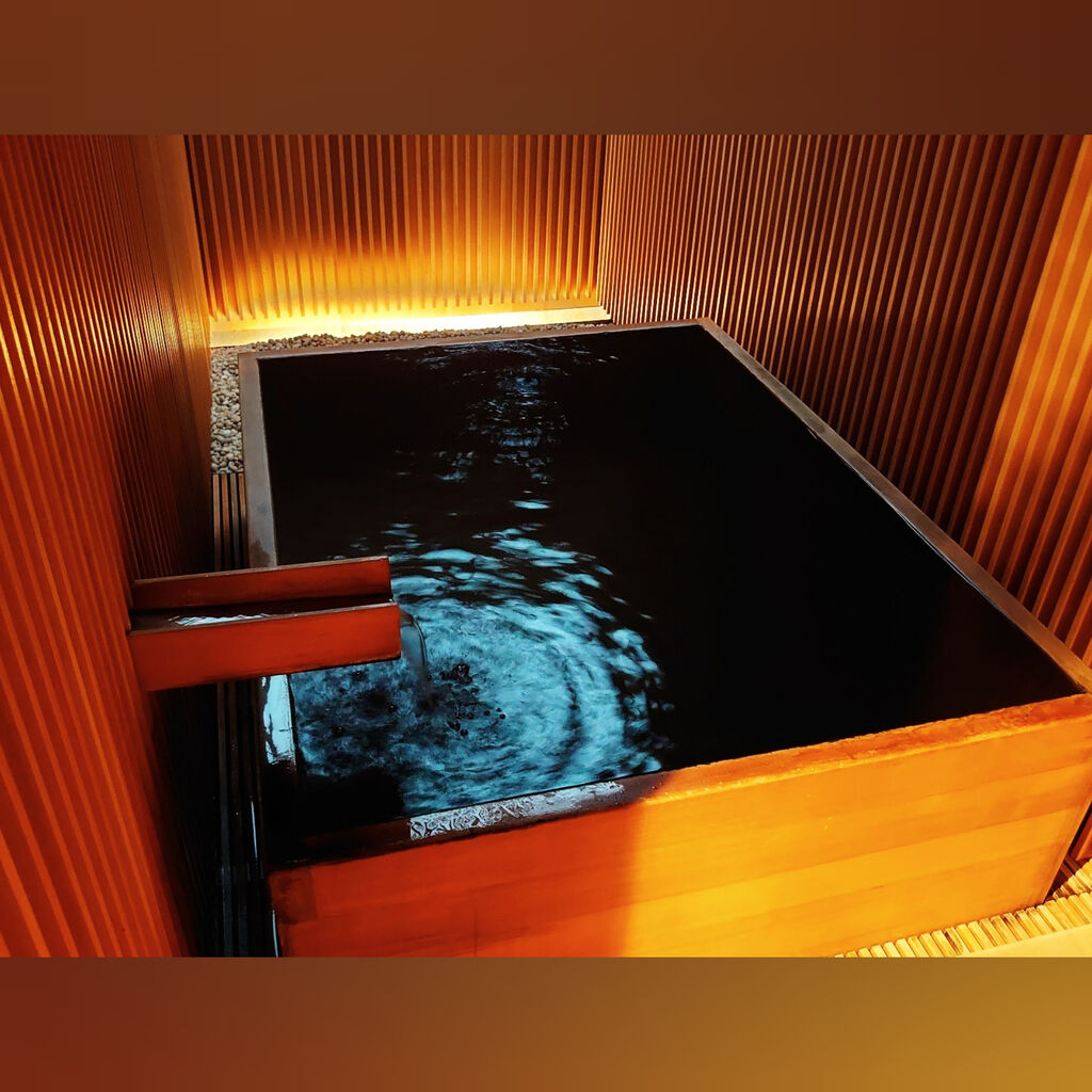 旅館藤屋さんの館内には大浴場が無く、石や竹、ヒバなどコンセプトの異なった5つの貸切風呂が24時間希望の時間に利用可能となっております♨️