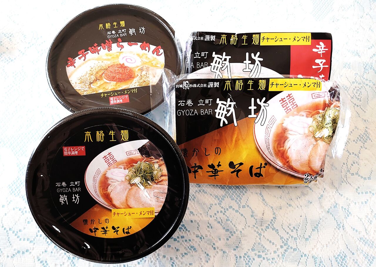 『敏坊プレミアムらーめん』は、生麺を使った石巻初のカップ式本格らーめんと、簡単調理用2食入りらーめんの2種類あります。