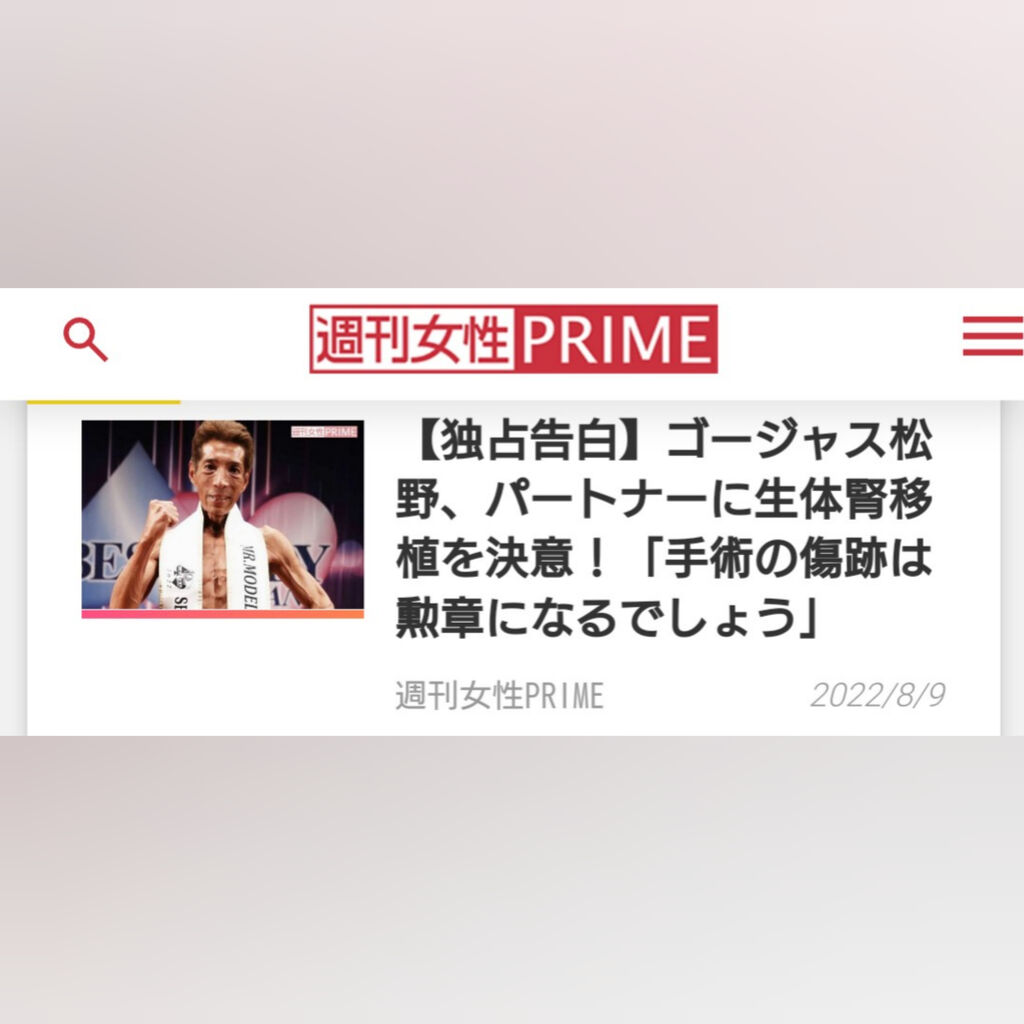 週刊女性PRIMEさんに移植を決意した心境等についてのインタビュー記事が掲載されました⤴️