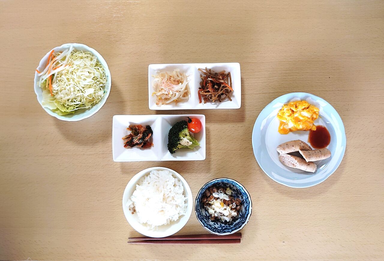 ○しろまるスクランブルエッグとウインナー
