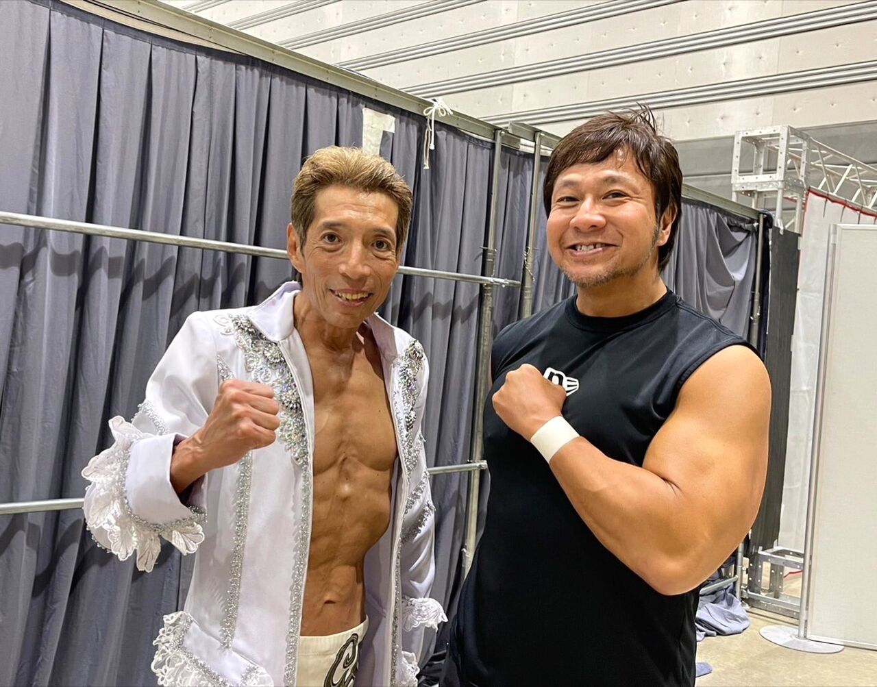 全日本プロレスさんには初参戦ということもあり、最初は柄にもなく(笑)緊張感マックスでしたが、同じく今大会に参戦された新日本プロレス所属の大先輩の永田裕志選手や小島聡選手から気さくに声を掛けて頂いた上、写真までご一緒させて頂き緊張感が一気にほぐれました😊