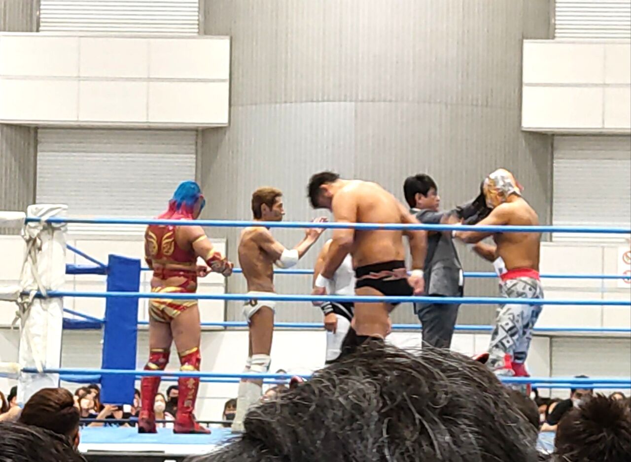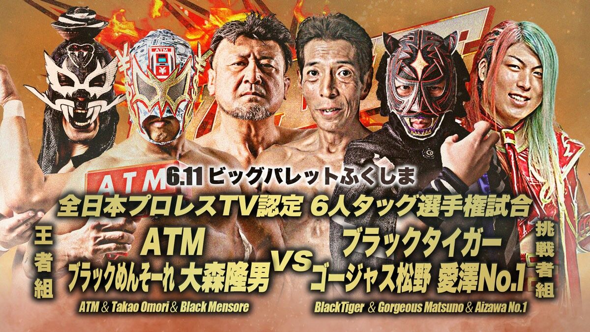 昨日の私の試合は、(第5代王者組)ATM&大森隆男&ブラックめんそーれ vs (挑戦者組)ブラックタイガー&ゴージャス松野&愛澤No.1の全日本プロレスTV認定6人タッグ選手権試合でした。