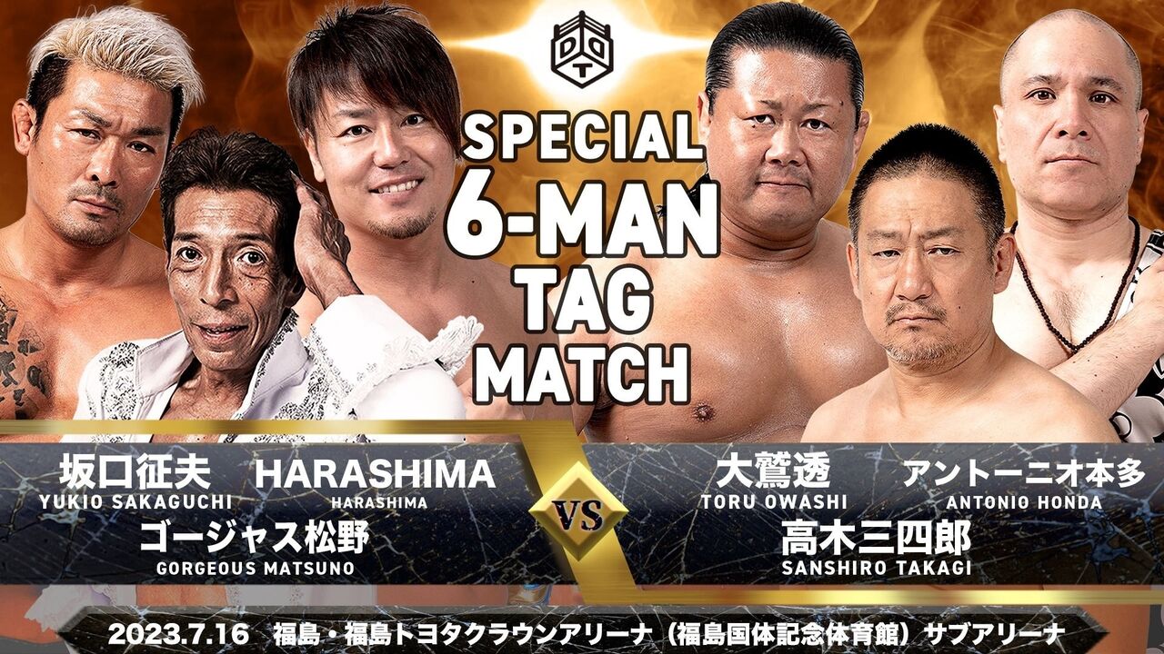 ゴージャス松野&HARASHIMA&坂口征夫 vs 大鷲透&男色ディーノ&アントーニオ本多