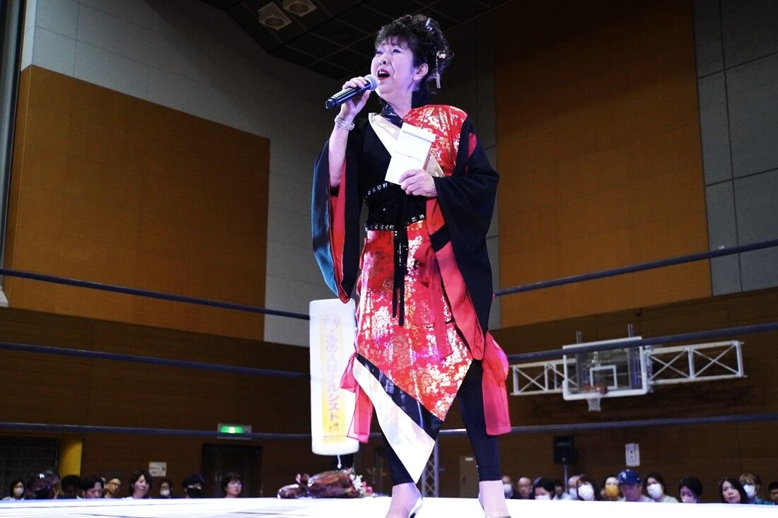 3番手に入場した私は、オリジナル曲『おまえのバラード』を唄いながら入場。