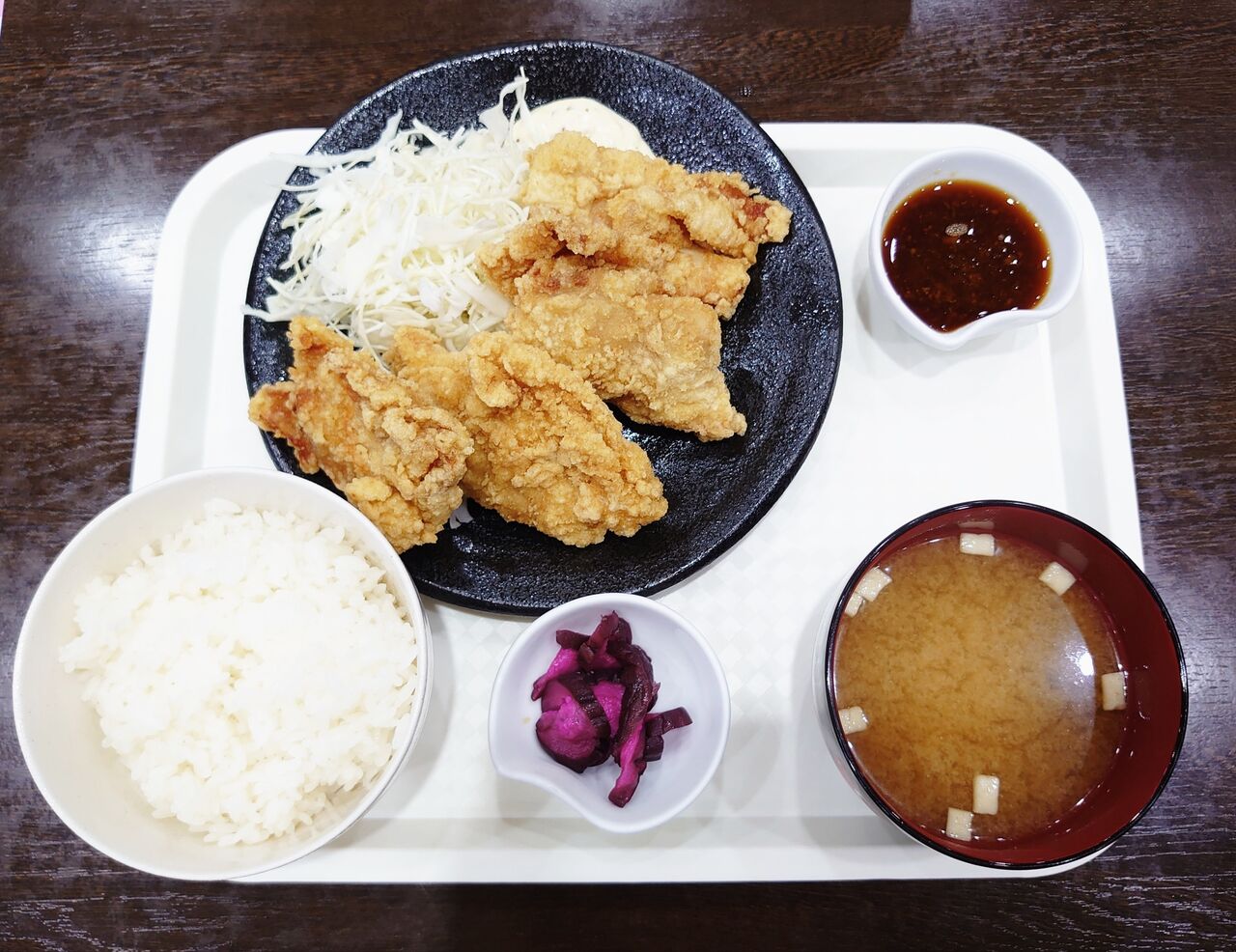 夕食は、帰り道に高速道路のサービスエリアで鳥の立田揚げ定食🥢