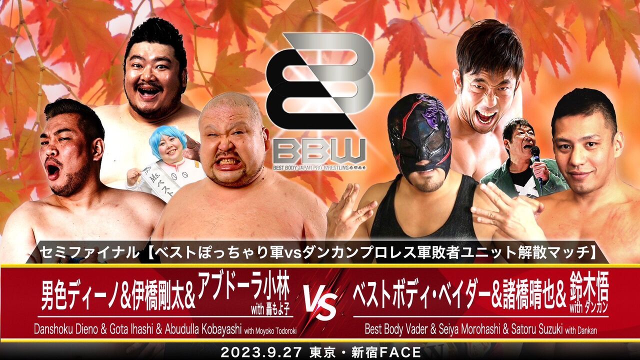 男色ディーノ&伊橋剛太&アブドーラ小林 with 轟もよこ vs ベストボディ・ベイダー&諸橋晴也&鈴木悟 with ダンカン