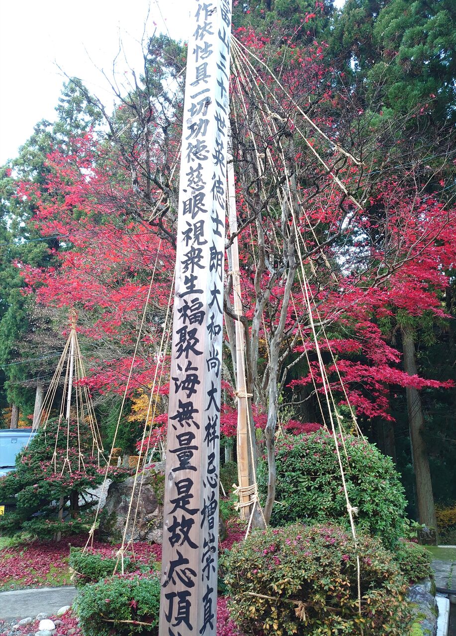 すっかり冬支度を終えた境内には、観音経の一節が刻まれた晋山式記念の角塔婆が建立されており、永谷寺を訪れる参拝者を優しく見守っているようでした😊