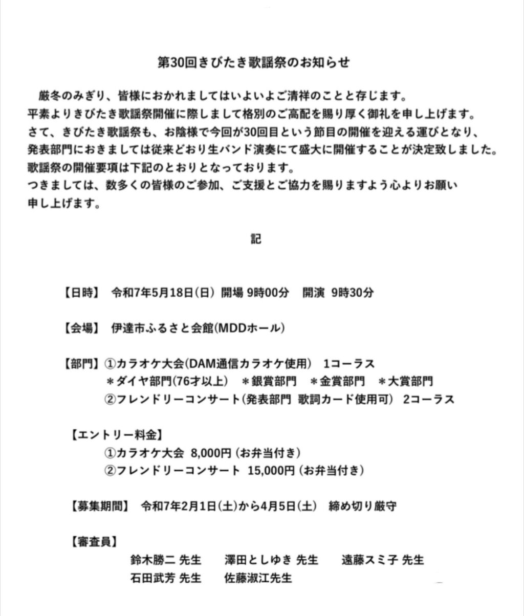 〜第30回きびたき歌謡祭開催情報⤴️〜