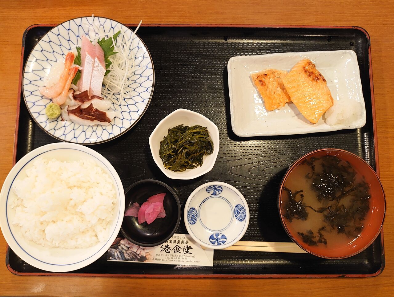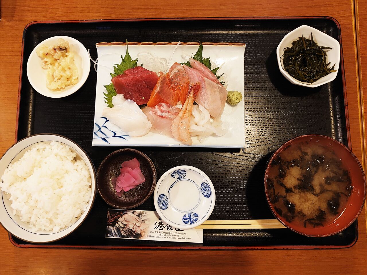 私は刺身定食、田代純子と友人は新鮮なお刺し身と日替わりの一品、小鉢がセットとなっている日本海定食を頂きました✨