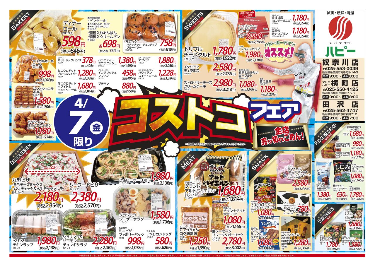 4/7(金)ハピー全店にて「コストコフェア」開催します。 (一部お取り扱いがない商品あります)