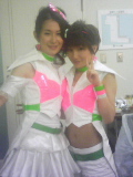 他の色の人とも撮りたかったんだけど、撮れてない人続出ですっ。すみません。新キャラの可愛い方とも撮りたかったのですが、自分の出番ちょい前になったので即移動ε=ε=ε=ε=┏(; ?▽ ?)┛ああぁぁぁああぁぁ〜やらかしたぁぁ。仁後とじゅりりんとも写真撮ってないし。だって、アイマスショートを歌い終わった後また早着替えという目まぐるしい忙しさだから仕方ないのw(?o?)w