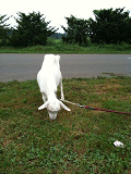 まさかこの時期に見れるとは思ってなく、嬉しくて写真撮っちゃった。家に紫陽花咲いていると、風流でいいよね(⌒-⌒)さて、家族全員で出掛けた場所は山です。霊山で有名なトコへ行きましたっ。時期が時期だから、人が少なかったのですが、霊山独特の空気に圧倒されました。そして山へ行った後、パンフレットでチェックしてた乳製品で有名なお店へ行きました。すると、看板犬ではなく看板ヤギ発見!