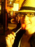 一日目に祭りに行ったのを書き忘れてたよ(_ ?Д`)夕飯後に行ったので、屋台いっぱいあっても食欲湧かず。しかし、祭り気分を味わうため、イチゴ飴を食べました(*?▽?*)激甘でした!