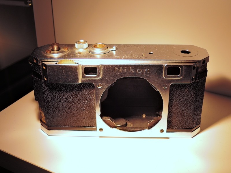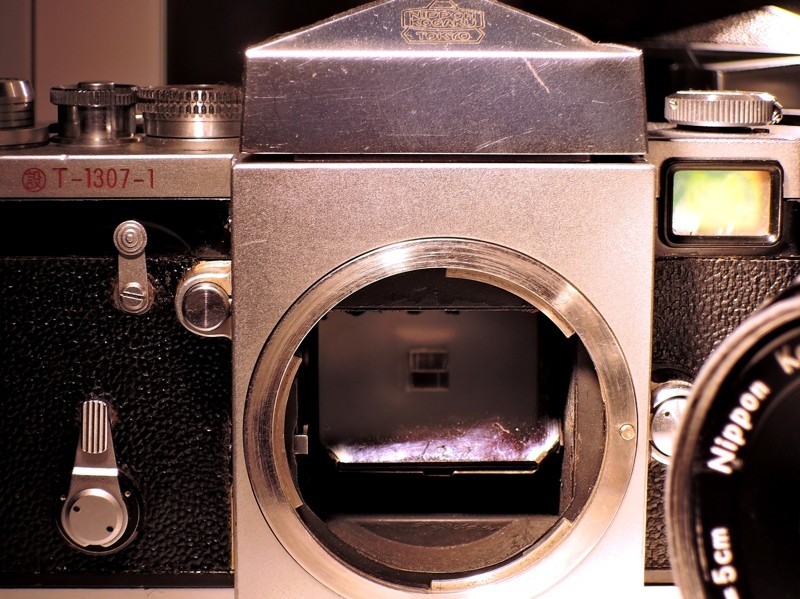 普通はミラーアップして使う超広角用レンズのファインダー だと思いますよね。それが50ミリ、35ミリ用とは思いも寄りませんでした。しかも、このファインダーを機能させるために、フィルムの巻き取り軸を複数のギアで迂回させてたって言うんですから驚きです。ここまでやった理由は不明って書いてありますけど、一眼レフのファインダーに馴染めないと想定されたレンジファインダーユーザーへの配慮、迎合だったことは明白です。狂ってますよ。さすがニコンです。