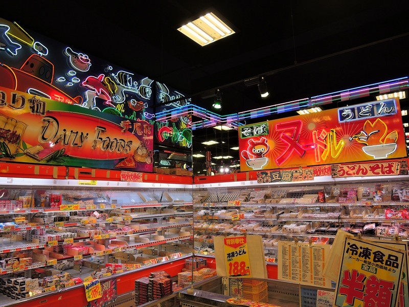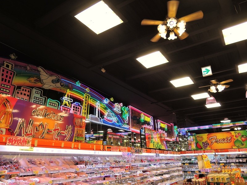 パチンコ屋だと思ったら、スーパーでした。見た目は昭和40〜50年代のパチンコ屋そのまんまです。