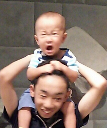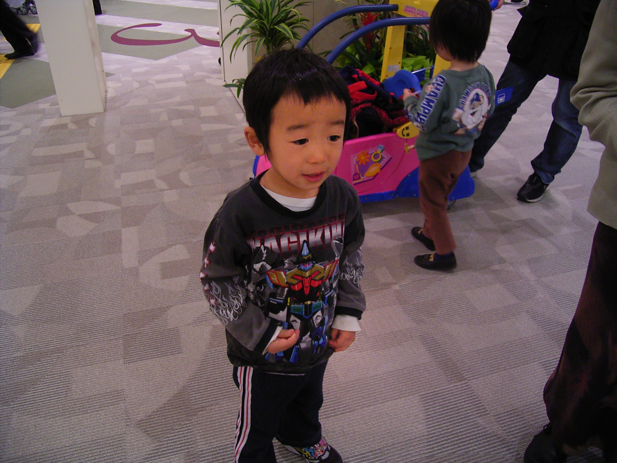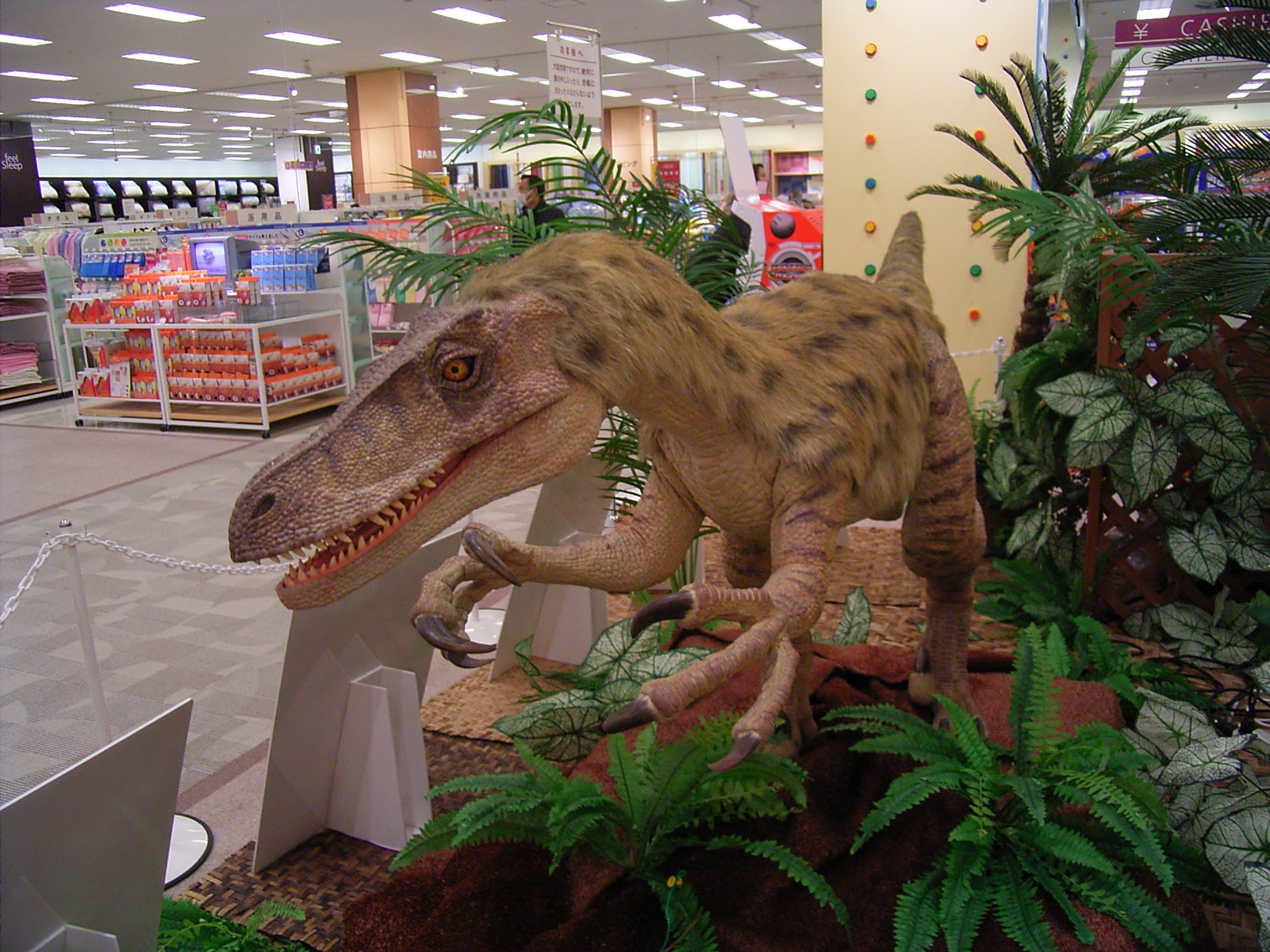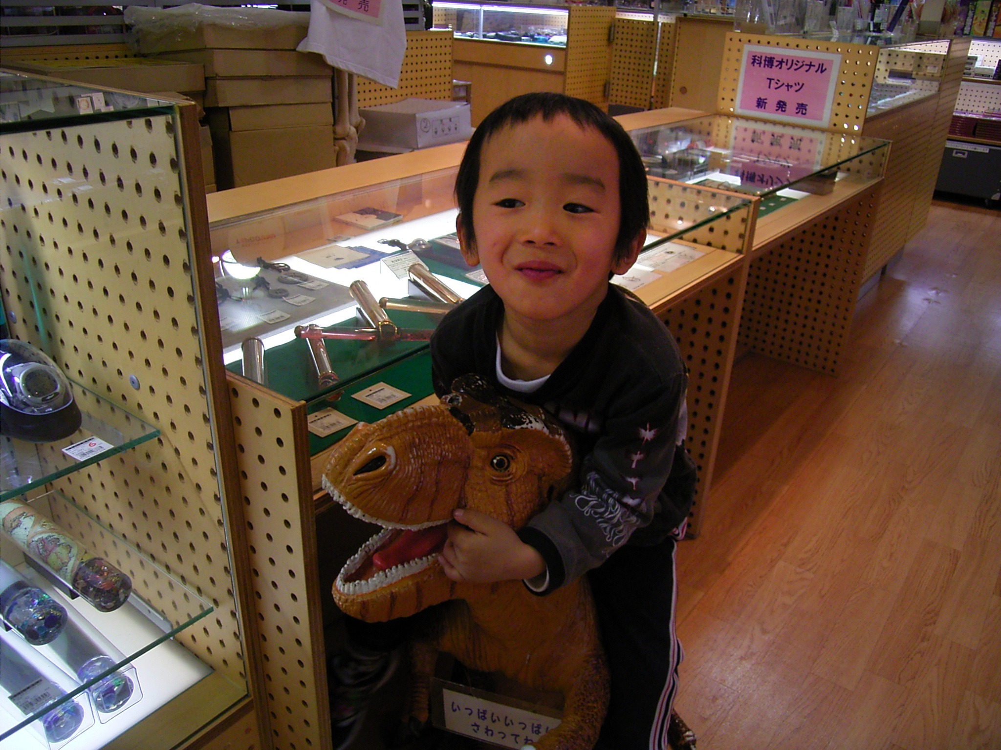 大きな甥(当時5歳)が動く恐竜を初めて見て、ビビってるところです。このあと大泣きして、走って逃げて、ぐずって大変でしたね。
