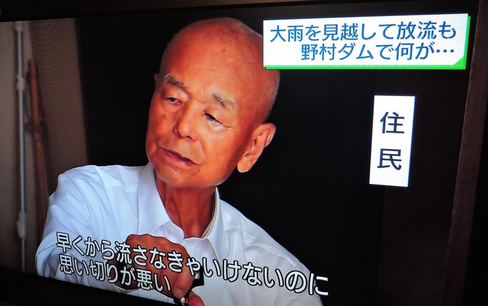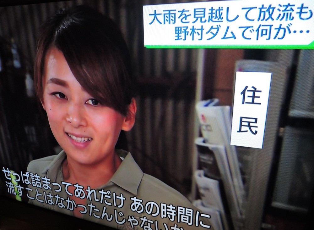 全容を知ってれば「車を取りに行った本人が悪いだろう」で終わる話です。しかし、それではこの主役のオバサンの腹の虫が収まらないので、どうやってでもダムを悪者にしたいんですね。そのために、住民説明会に特大の遺影を持ち込んで「ダムを撤去しろ」と騒ぎ、テレビに出て来て、嘘話の垂れ流しに加担しているのが実態です。