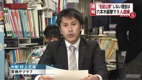 勝本渉を使って、低俗なヤラセ・捏造番組を制作させる。フジテレビに対して、放送責任の追求を始めた途端、フジテレビは、番組の公式サイトから村上正成の名前を削除し、あからさまな隠ぺい工作を行う。番組の制作責任者でありながら、協議の場においては終止ほぼ無言を貫く。どうやら頭がよろしく無いらしく、ボロを出すのを恐れて、お地蔵さんになるしかなかった模様。写真は警視庁で記者をしていた当時のもので、当該番組制作時はピアスをはめたチャラいオッサンでした。見た目通り、頭の悪いオッサンのため、勝本渉のようなゴロツキとつるんでゴミ番組を作ることしか出来ない能無しですね。