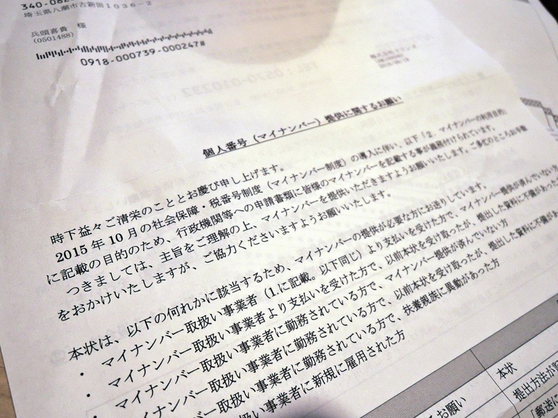 今日、マイナンバーを送れと記された詐欺文章が届きました。