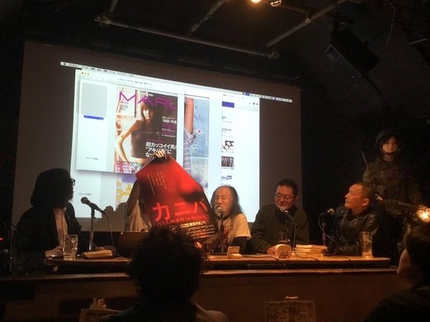 出番の直前に、急に足の裏がかゆくなって靴下を脱ぎました。おそらくですが、目の前で根本敬先生が話してる姿を見て、無自覚の緊張状態になったのだと思います。手に汗を握るのではなく、足の裏に汗がにじんでいたのでしょうか。あるいは、変人は、緊張して発汗する場所もおかしいのかもしれません。根本先生の仙人感は半端ないですけど、やはり、そういう力が備わってる方です。