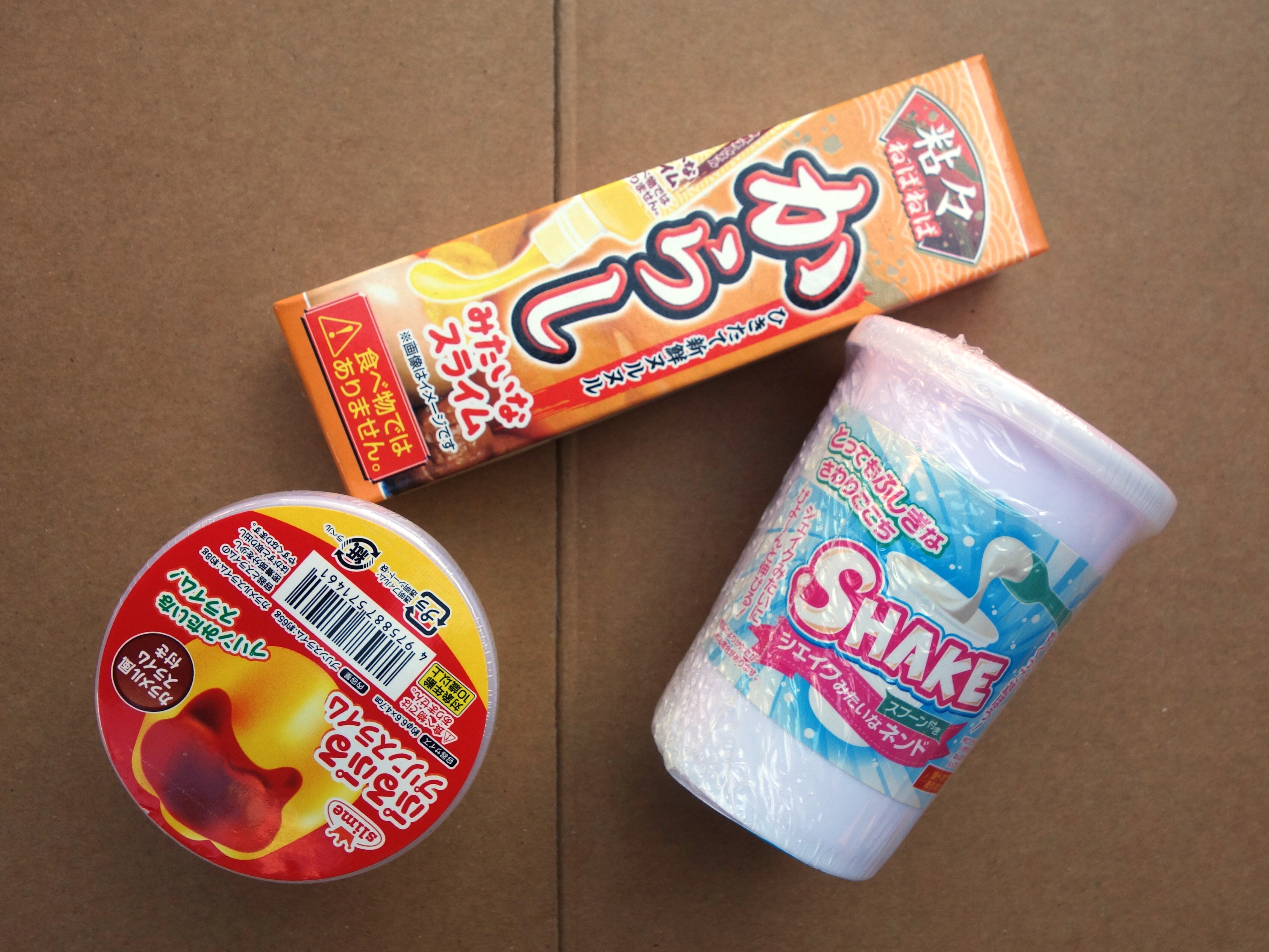 パッケージは本物の食い物そっくりですが中はスライムです。小さい子供は欲しがりますが、賃貸住宅で使われたらお母さんが泣くやつです。見た瞬間に成近屋の製品であることが分かりました。危険な臭いがする100円玩具は大体あそこですからね。
