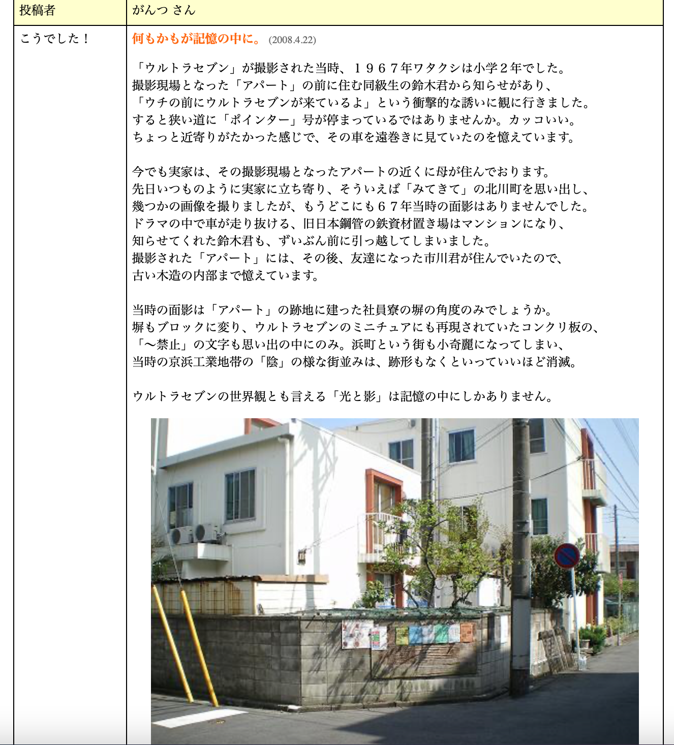 三ノ輪辺りにこういう別邸が欲しいです。メトロン星人の住処は、セブンの撮影時点で古臭かったですけど、いつ頃建ったアパートだったのか気になりますね。昔、近所にダム建設のために転勤して来た一家が住んでましたけど、平家のダム住宅は築年数が10年も経ってないはずなのに、廊下の床(無垢板だったと思います)が黒光りしてて、凄く古臭く感じました。昔は、今ほど建材が発達してなかったので、風化が速かった気がします。