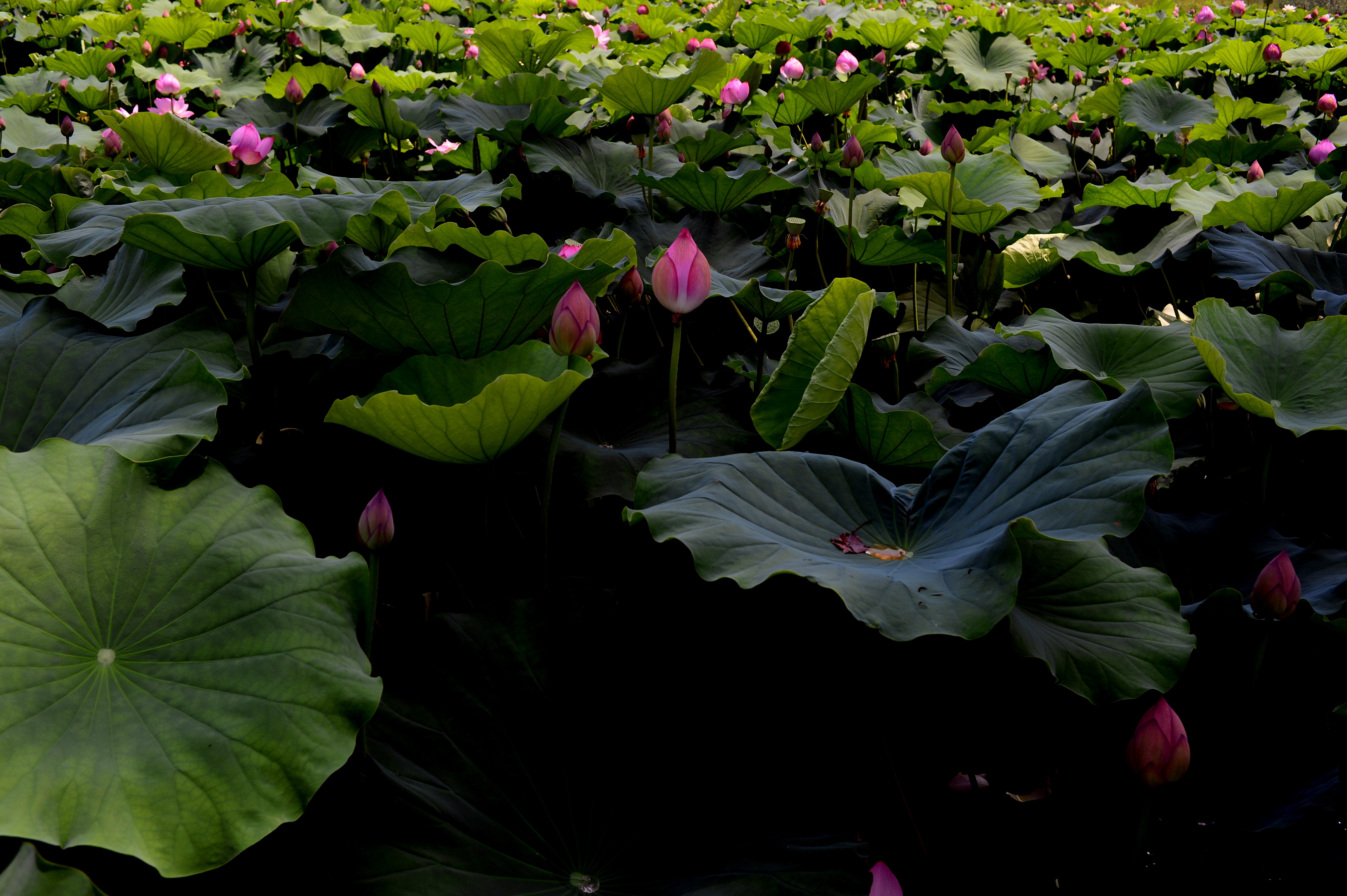 予想通り、蓮は去年の異常繁殖にも増して茂ってましたが、桃色と白の混合種が半分ほどを占めたせいで、花の美しさは今ひとつでした。