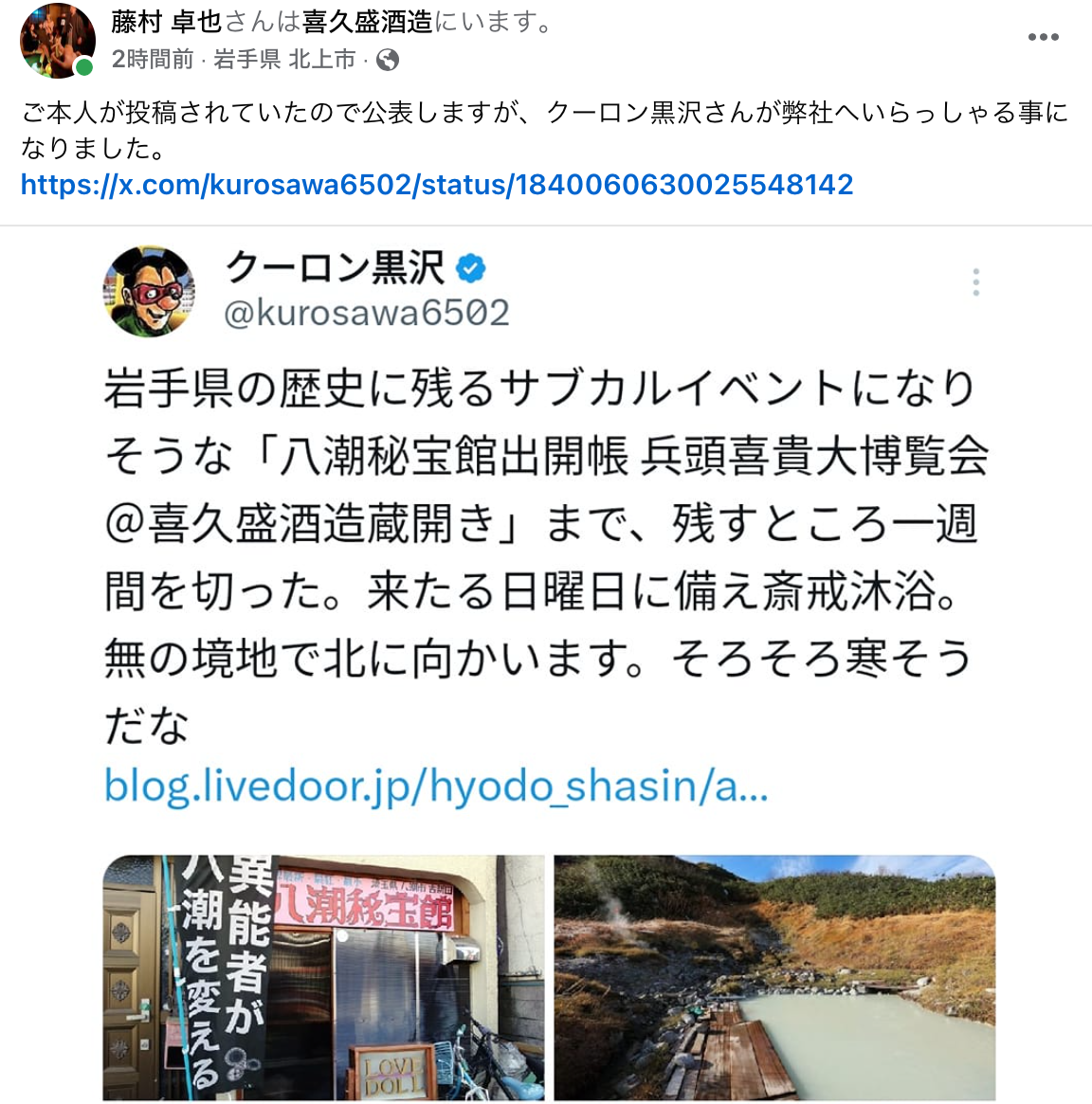 黒沢さんは、告知と同時にコメント欄で参加表明されてましたけど、相当楽しみにされてるようですね。