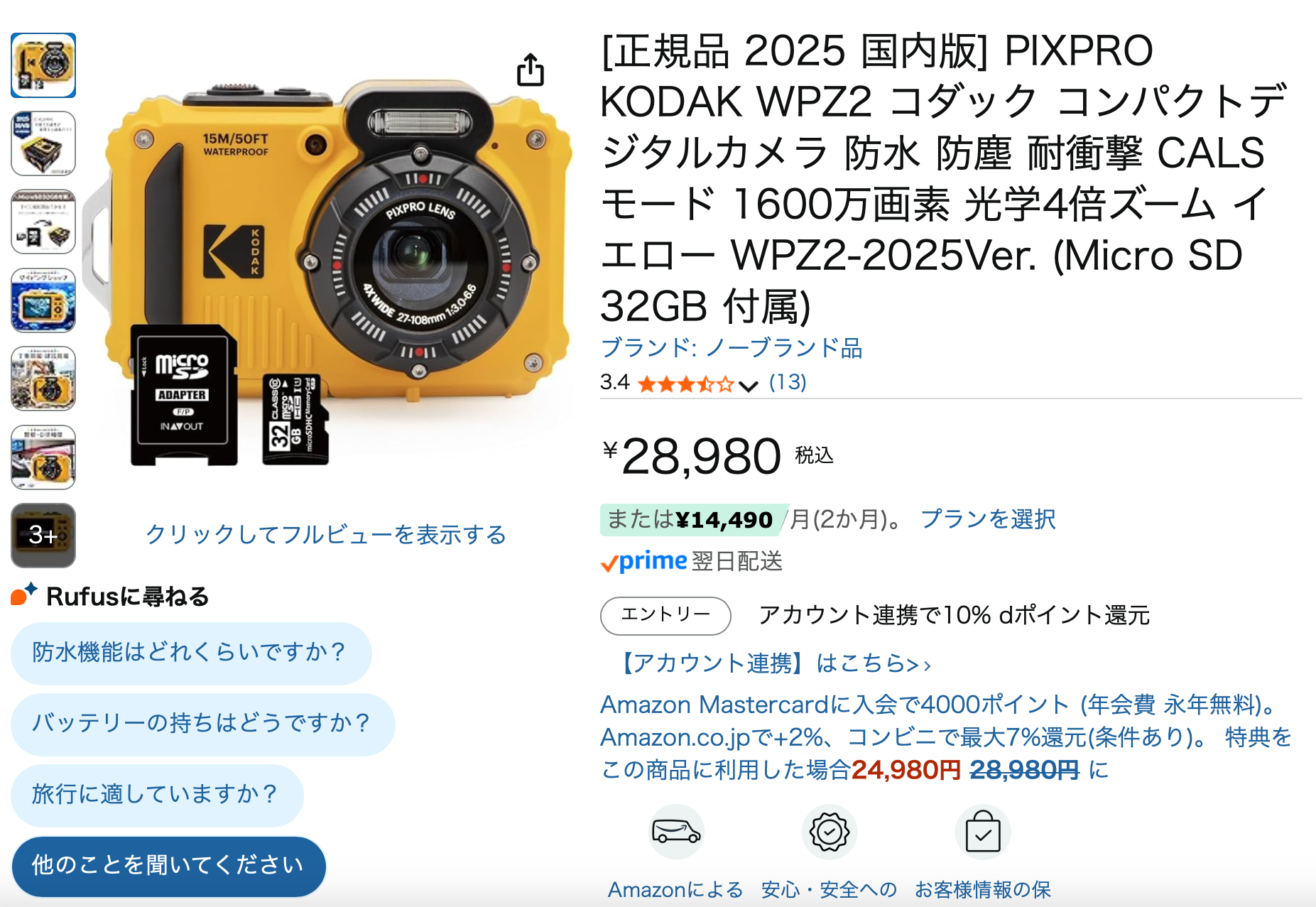 中身が同じでガワだけ違うカメラをPENTAXも売っていて、そちらの方が修理も楽だろうし、意匠も洗練されているので、コダックイエローにこだわりが無い方は、こちらをオススメします。