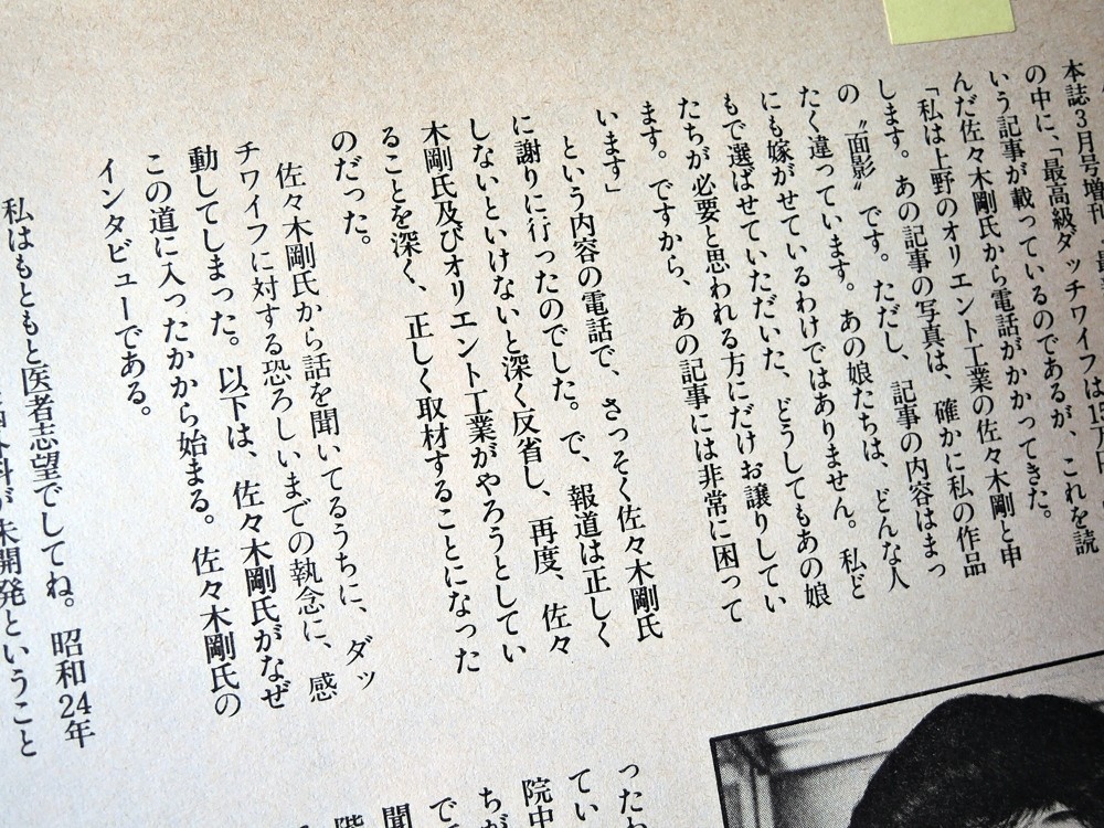 佐々木さんがオリエント工業を経営していた頃のインタビューが、以下の雑誌に掲載されています。