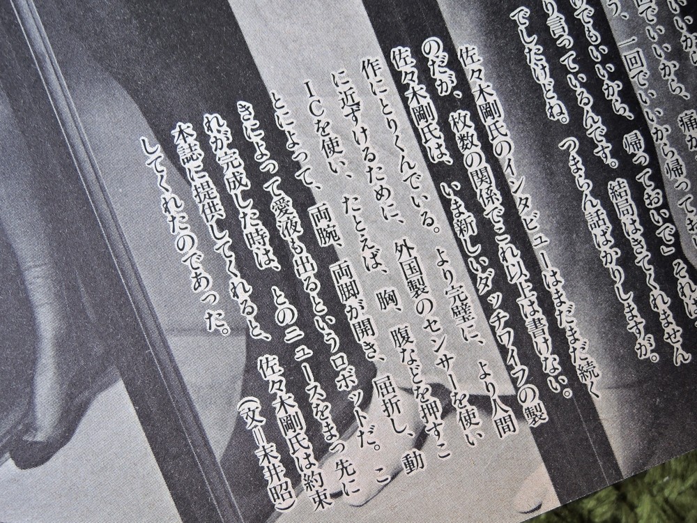 「インタビューはまだまだ続くのだが、枚数の関係でこれ以上は書けない」と記されていますが、本当はヤバ過ぎて記事に出来なかったのだと思います。残念ながら、佐々木さん自身の手によって愛液が出るロボットは実用化されることはありませんでしたが、同じ夢を追う人は、今も世界中にいて、新世代のダッチワイフは作られ続けています。