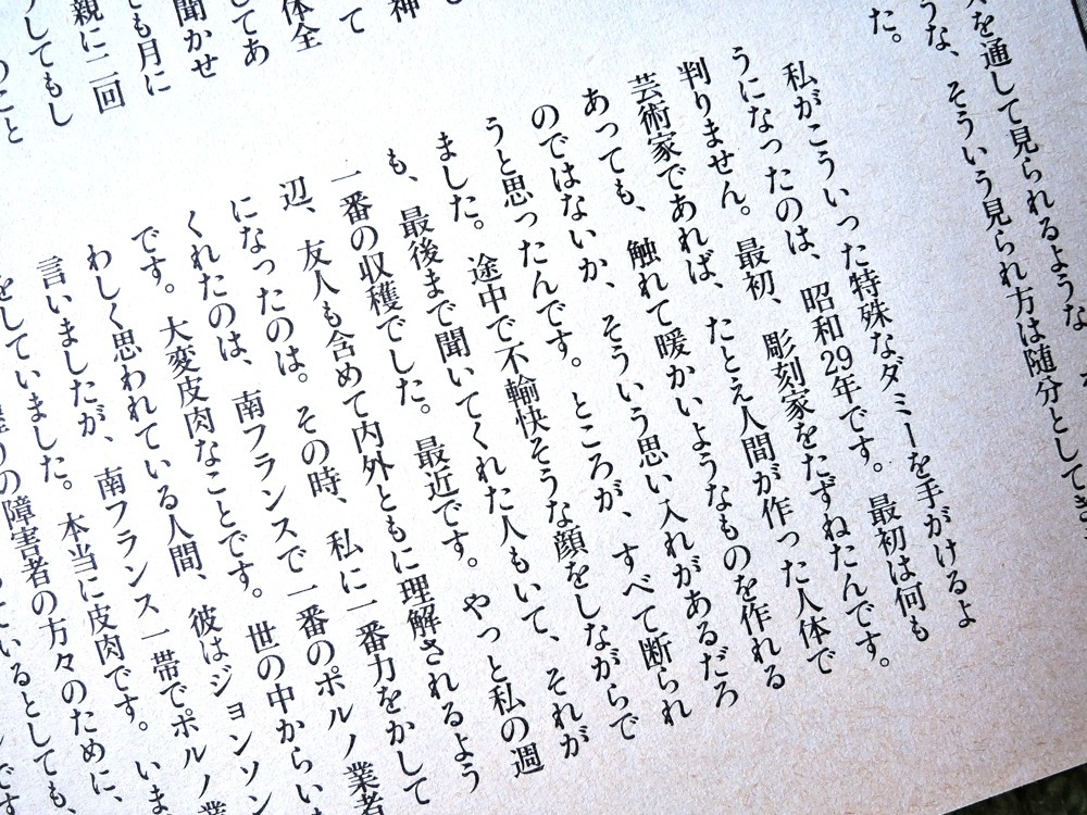 元は医者で、障害者とその親の苦痛を和らげるために、昭和20年代から精巧なダッチワイフの開発を始められたそうです。そのインタビュー記事は、衝撃の記述の連続です。