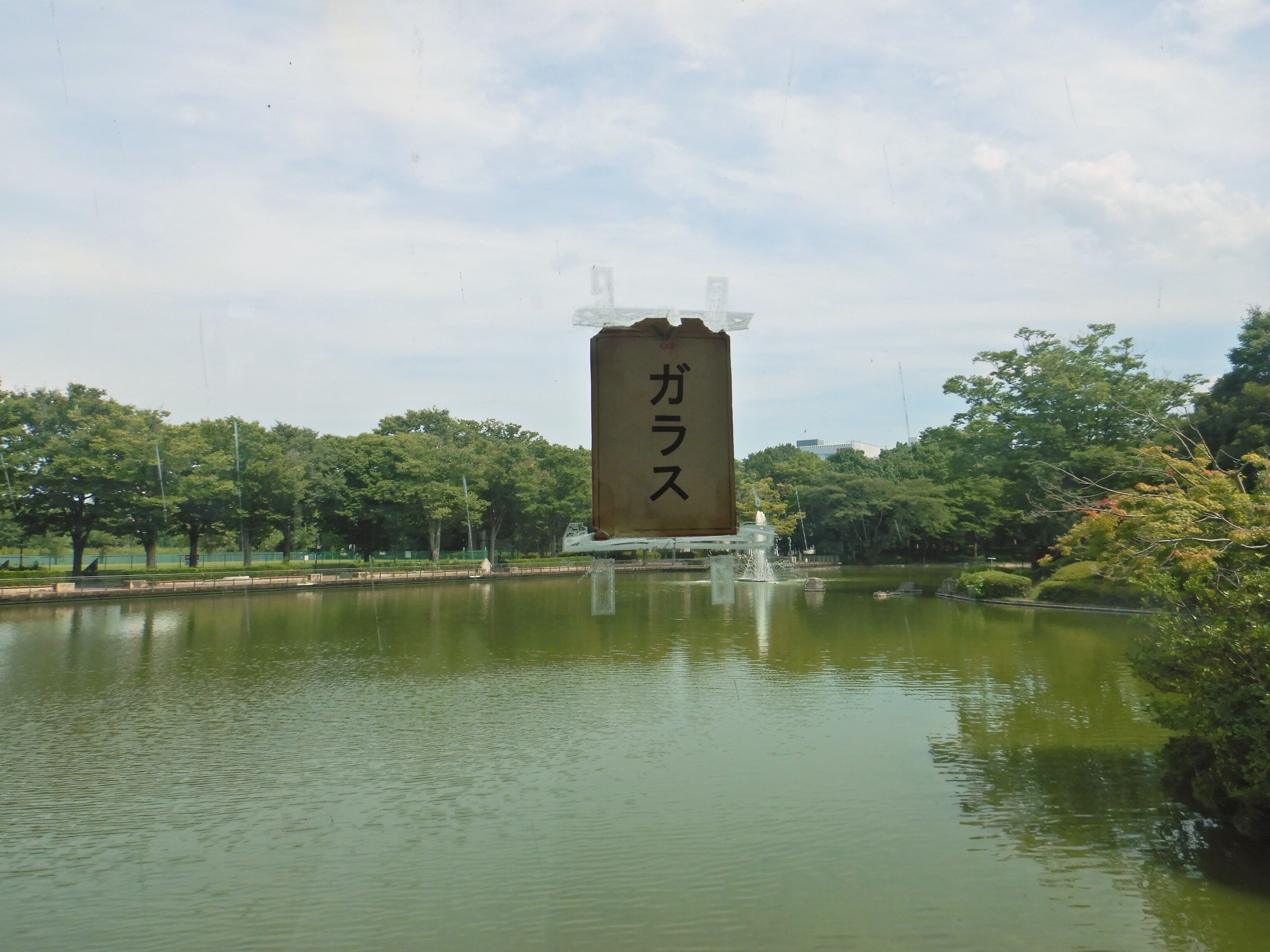 ガラスに「ガラス」と貼ってあります。昔はぶつかる人がいたのでしょう。今は汚れているし、ガラスも劣化しているのでぶつかる人はいないはずです。